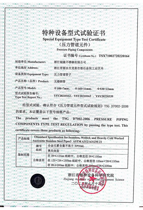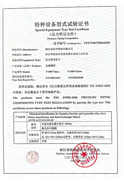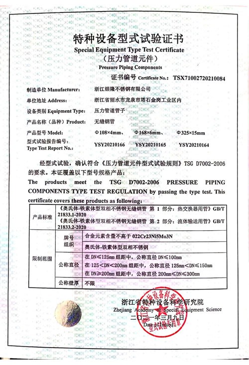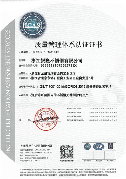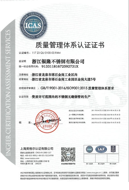 浙江銀隆不銹鋼有限公司創(chuàng)始于2006年,是一家專業(yè)生產(chǎn)不銹鋼無縫管的企業(yè)。公司位于浙江麗水市,企業(yè)注冊總資金貳億壹仟柒佰肆拾玖萬元,擁有4家工廠,占地總面積11萬平方米,職工530人,年產(chǎn)不銹鋼無縫管5萬噸。